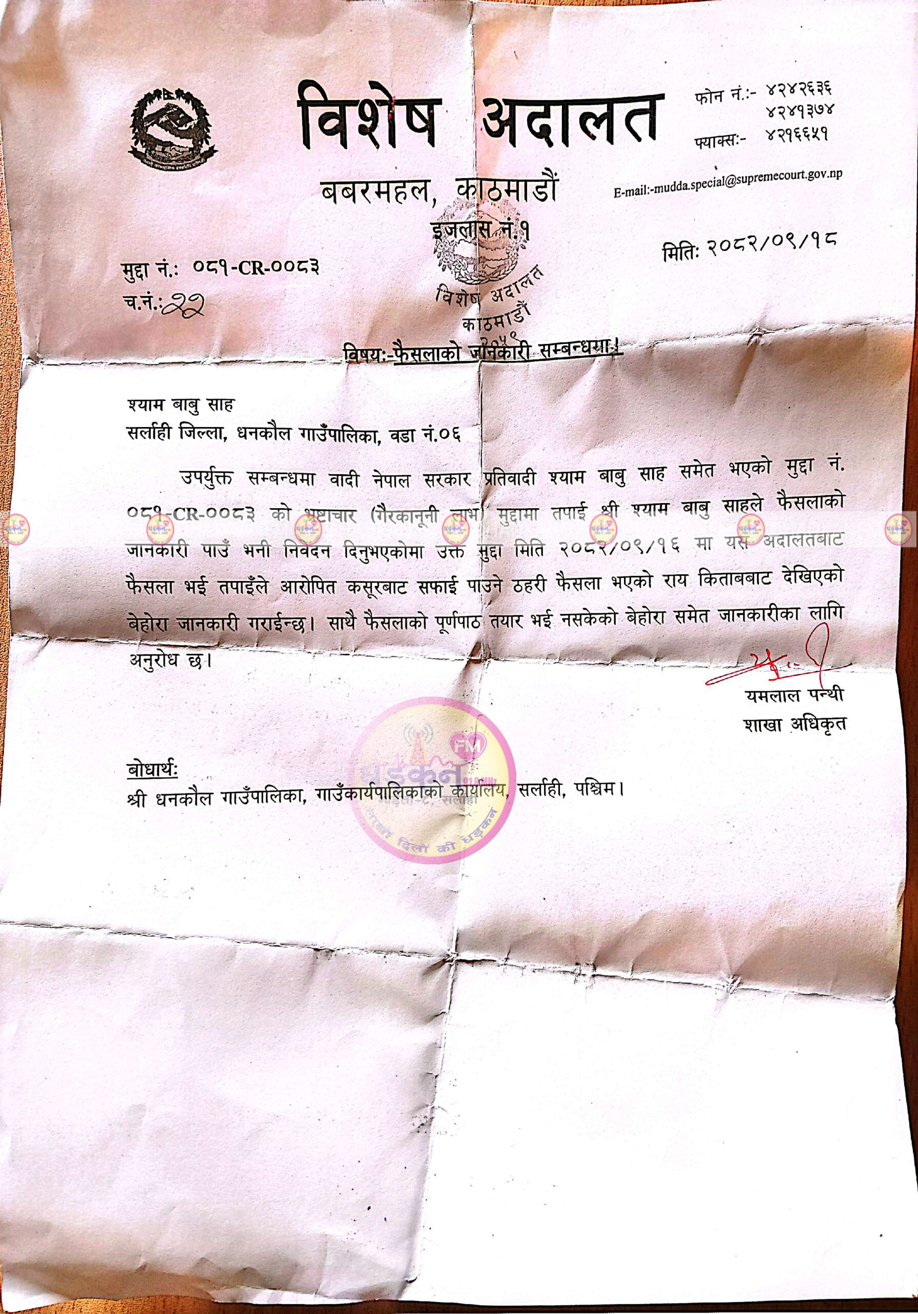 अदालतबाट सफाइ पाएपछि साहलाई पुनः वडाध्यक्ष पदमा बहाल गरिएको हो। अदालतको फैसलाको पूर्णपाठ भने आउन बाँकी रहेको जनाइएको छ।